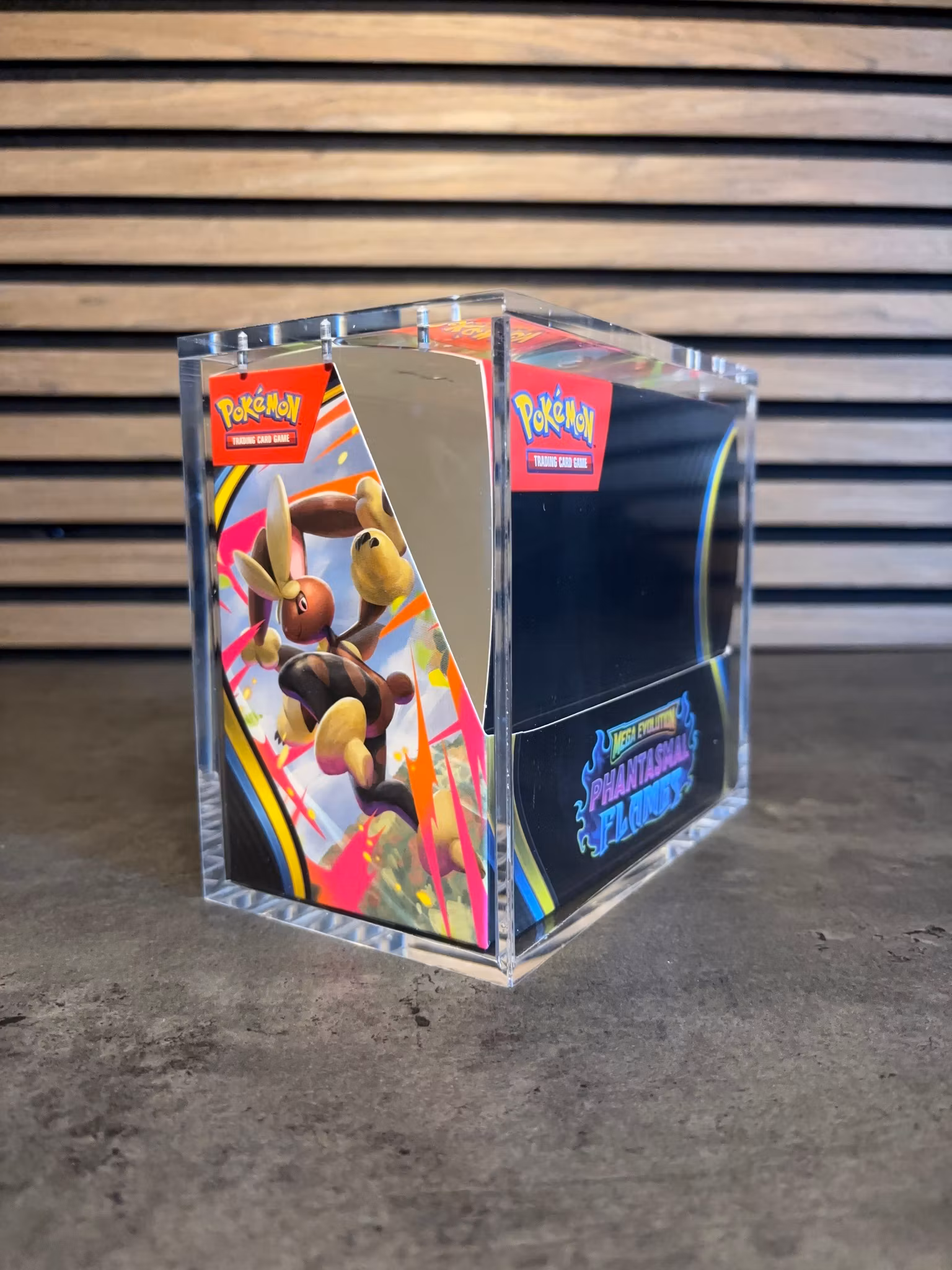 📦 Skydd och presentation: Akrylboxen håller din Pokémon Booster Box säker och snygg på hyllan.