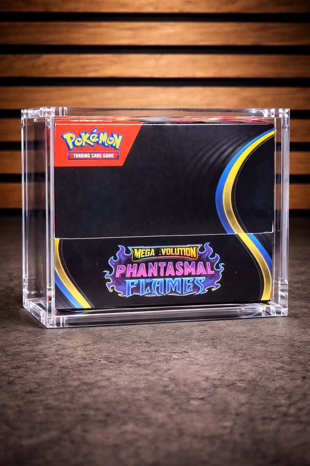 📦 Skydd och presentation: Akrylboxen håller din Pokémon Booster Box säker och snygg på hyllan.